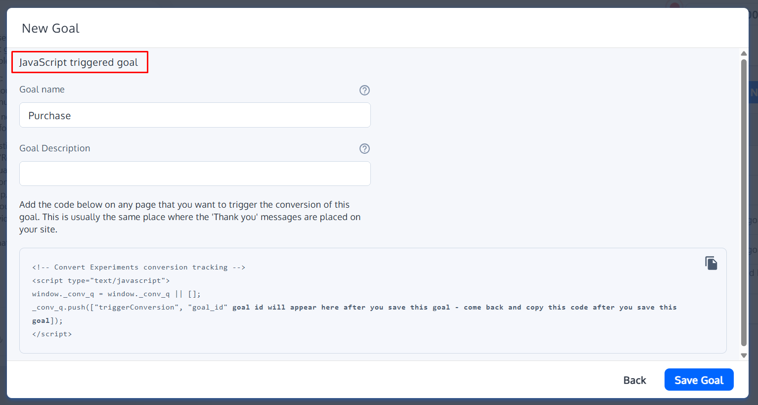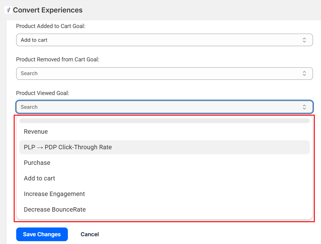Important note: If goals are not created in Convert, they will not appear in the Shopify app dropdown.